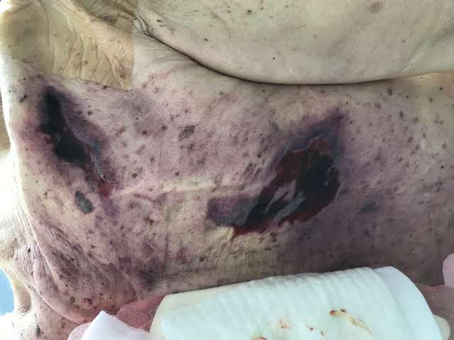 Mon père décédera le 14 juin 2017, avec un corps décharné et parsemé d’escarres stade 4 et stade 2 : un trou dans la gorge, un sous le menton, 2 dans les omoplates et l’escarre 4 avait atteint le sacrum.